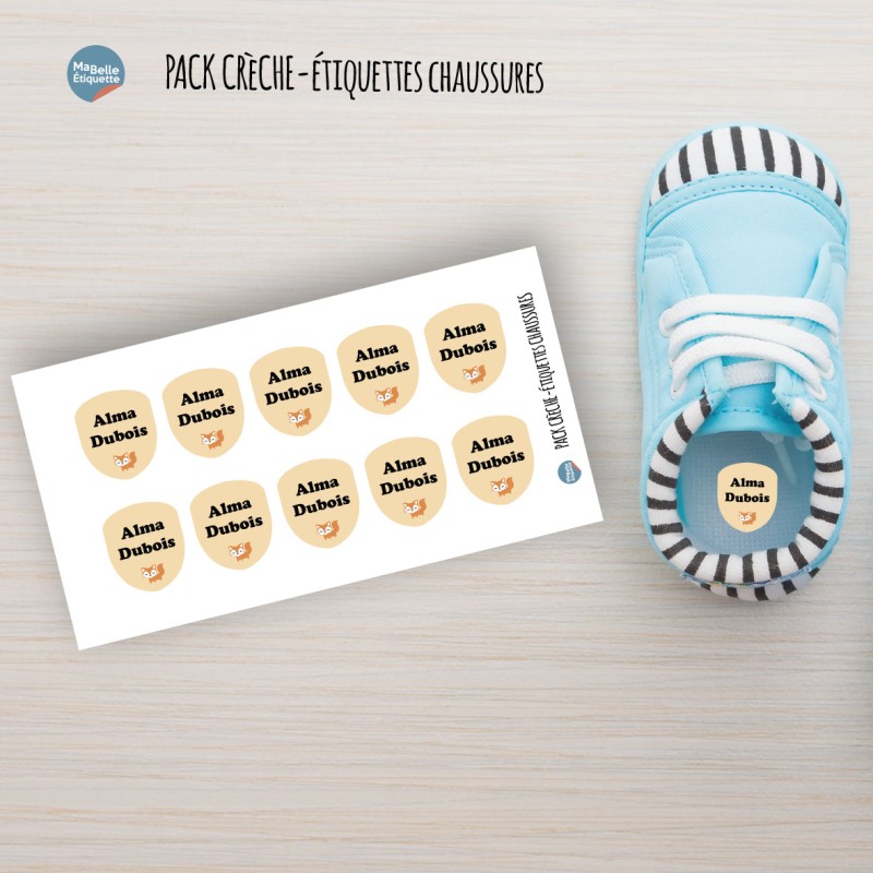 Nous avons ajouté à ce pack des étiquettes écus pour marquer les chaussons et chaussures de votre bébé. Ces étiquettes pour chaussures se collent à l'intérieur sur la semelle au niveau du talon.