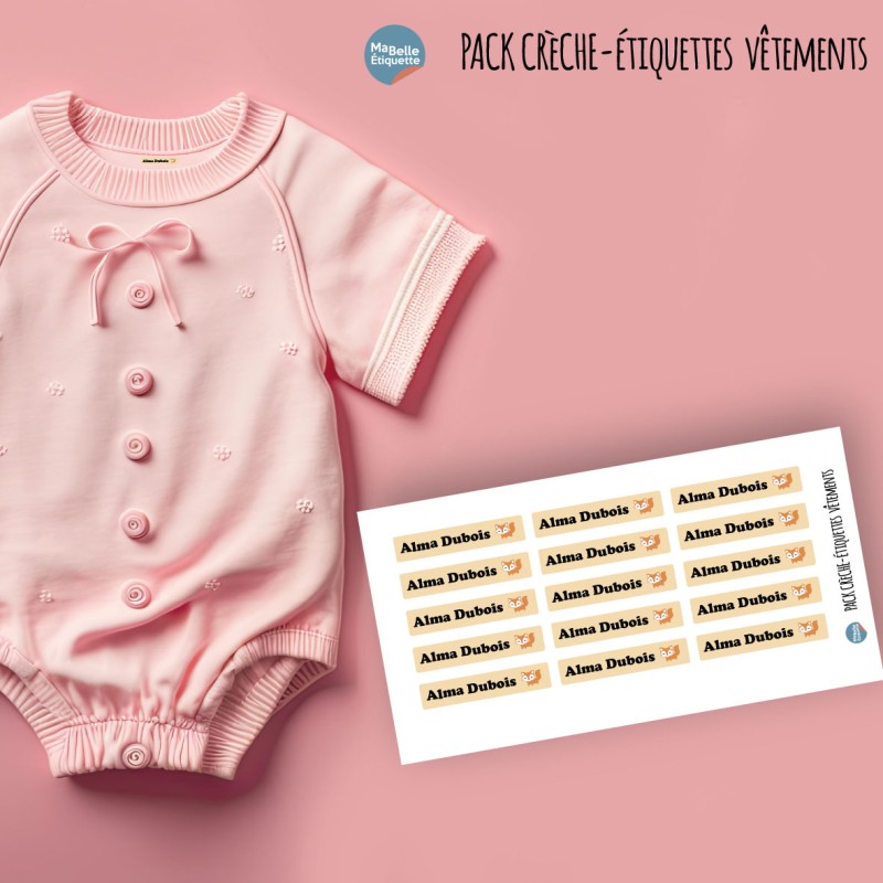 Notre pack d'étiquettes thermocollantes et autocollantes personnalisables sera idéal pour ne pas perdre les affaires de votre bébé à la crèche. Les nounous ne pourront plus mélanger les affaires des enfants.